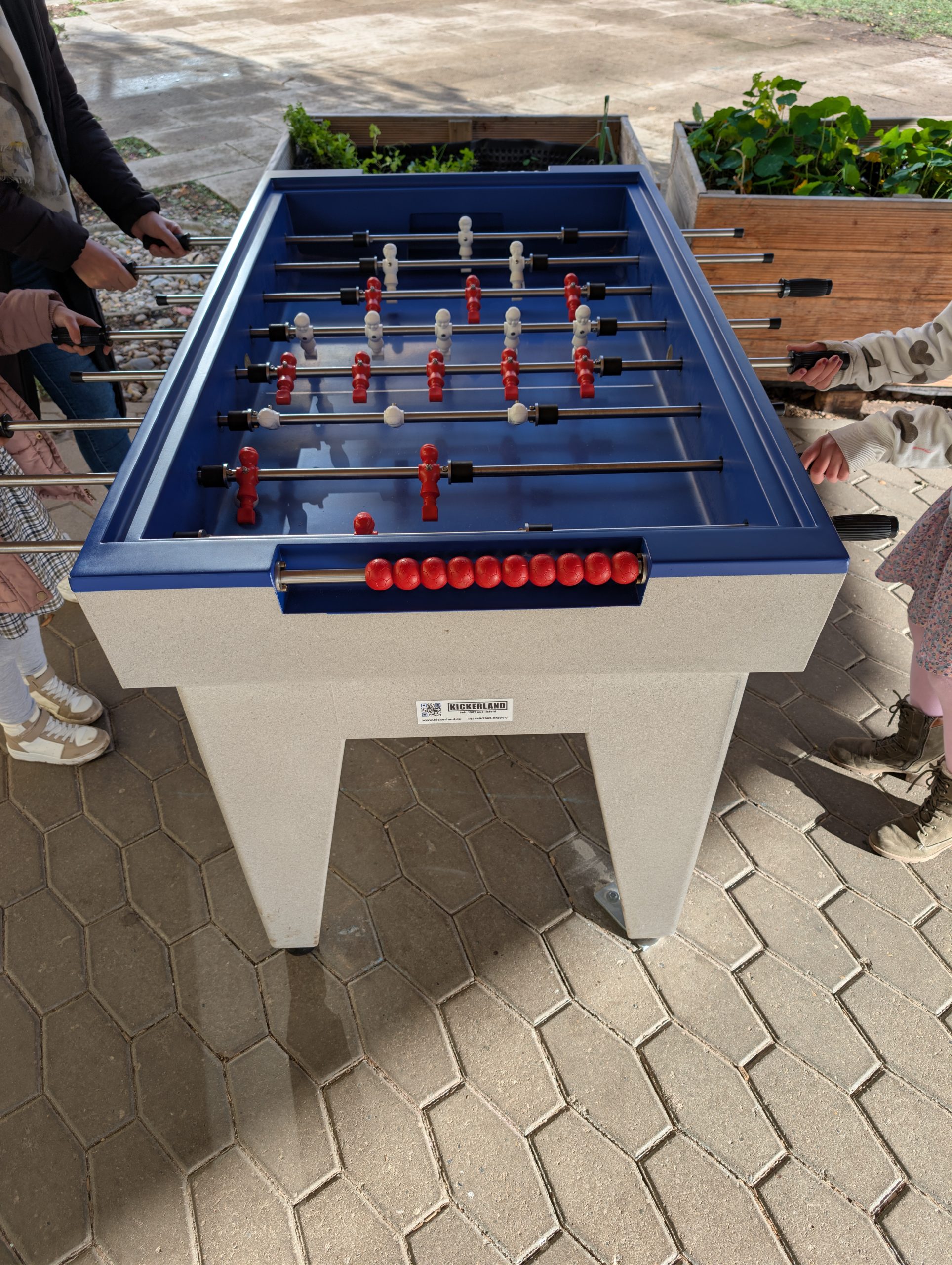 Wir freuen uns riesig, einen neuen, stabilen Beton-Outdoor-Tischkicker bekommen zu haben. Unser Dank gilt dem großartigen Förderverein, der mit einer sehr großzügigen Spende diese neue Spielmöglichkeit für unsere Kinder gekauft hat. Vergelt´s Gott – wir freuen uns sehr!